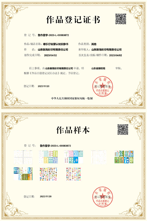 嘟樂仔啟蒙認(rèn)知安靜書記證書