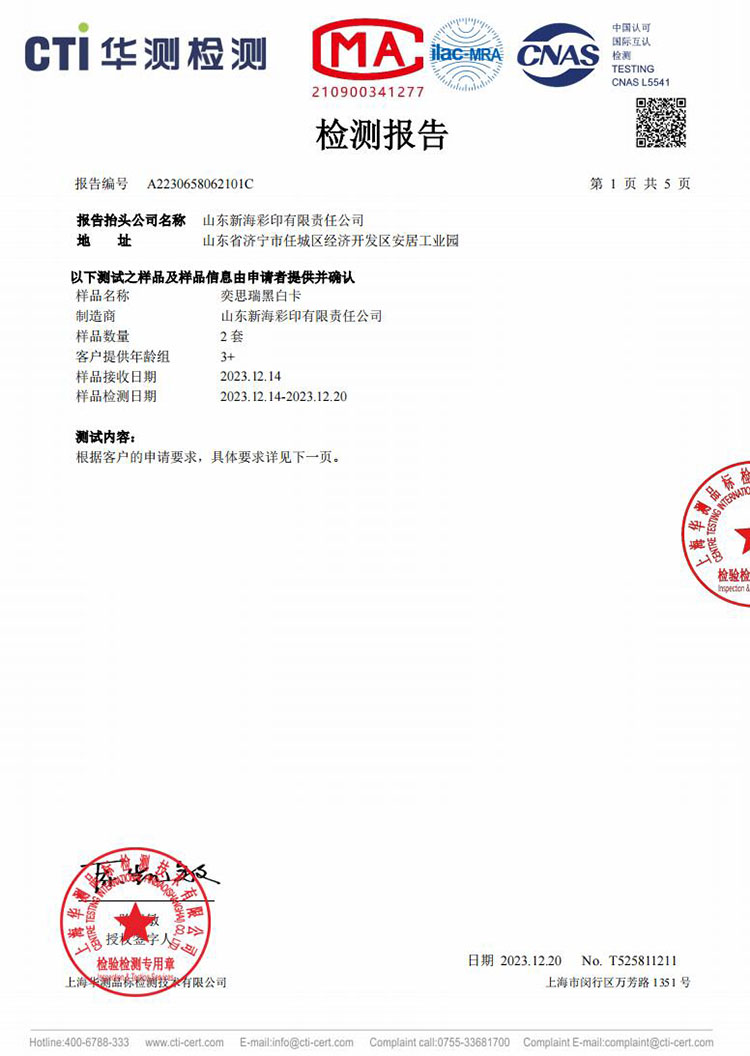 奕思瑞黑白卡檢測報告2023